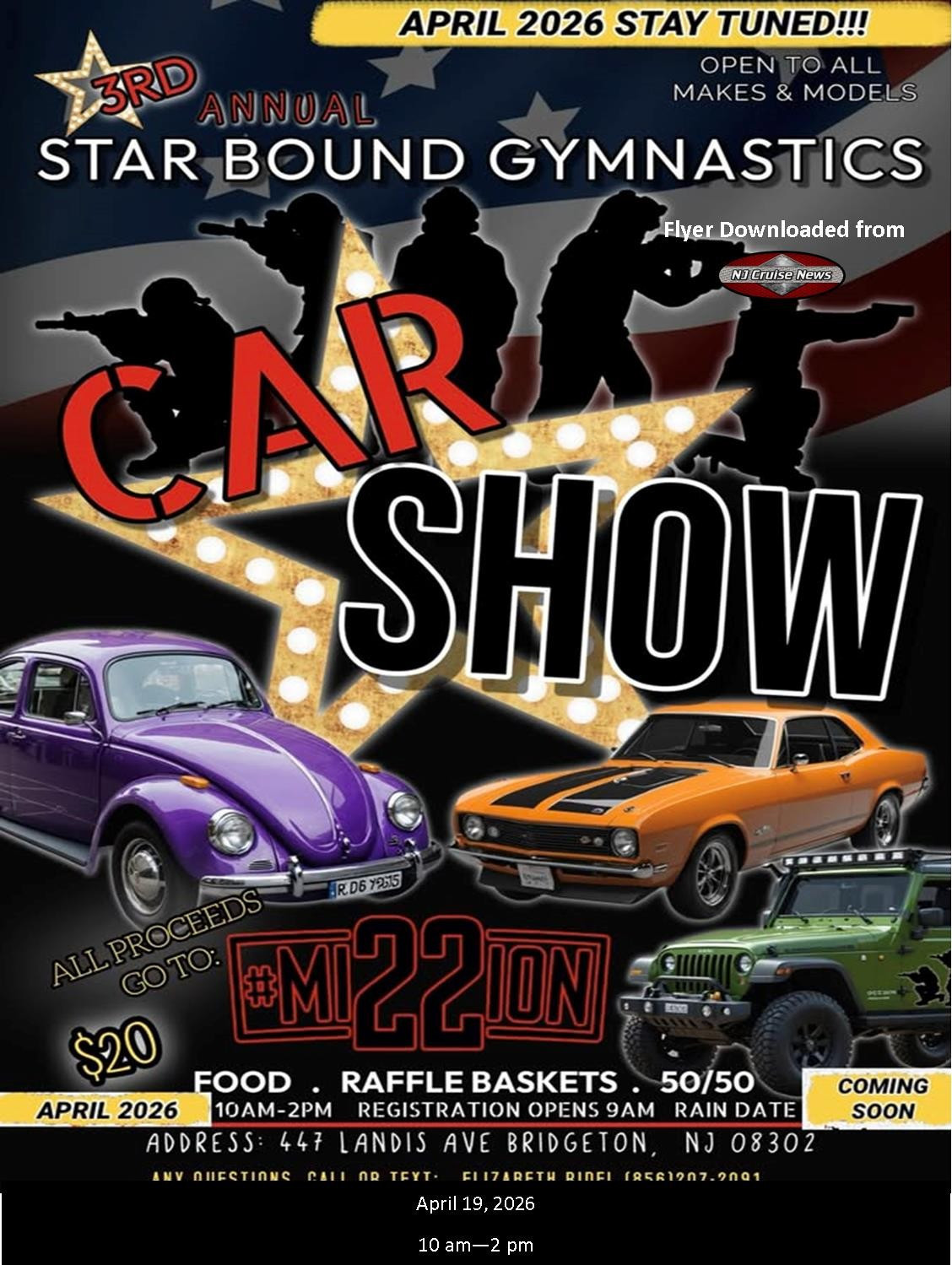 NJ Cruise News is not Responsible for any changes in Date, Time, or Change of location. Please contact your local Cruise.