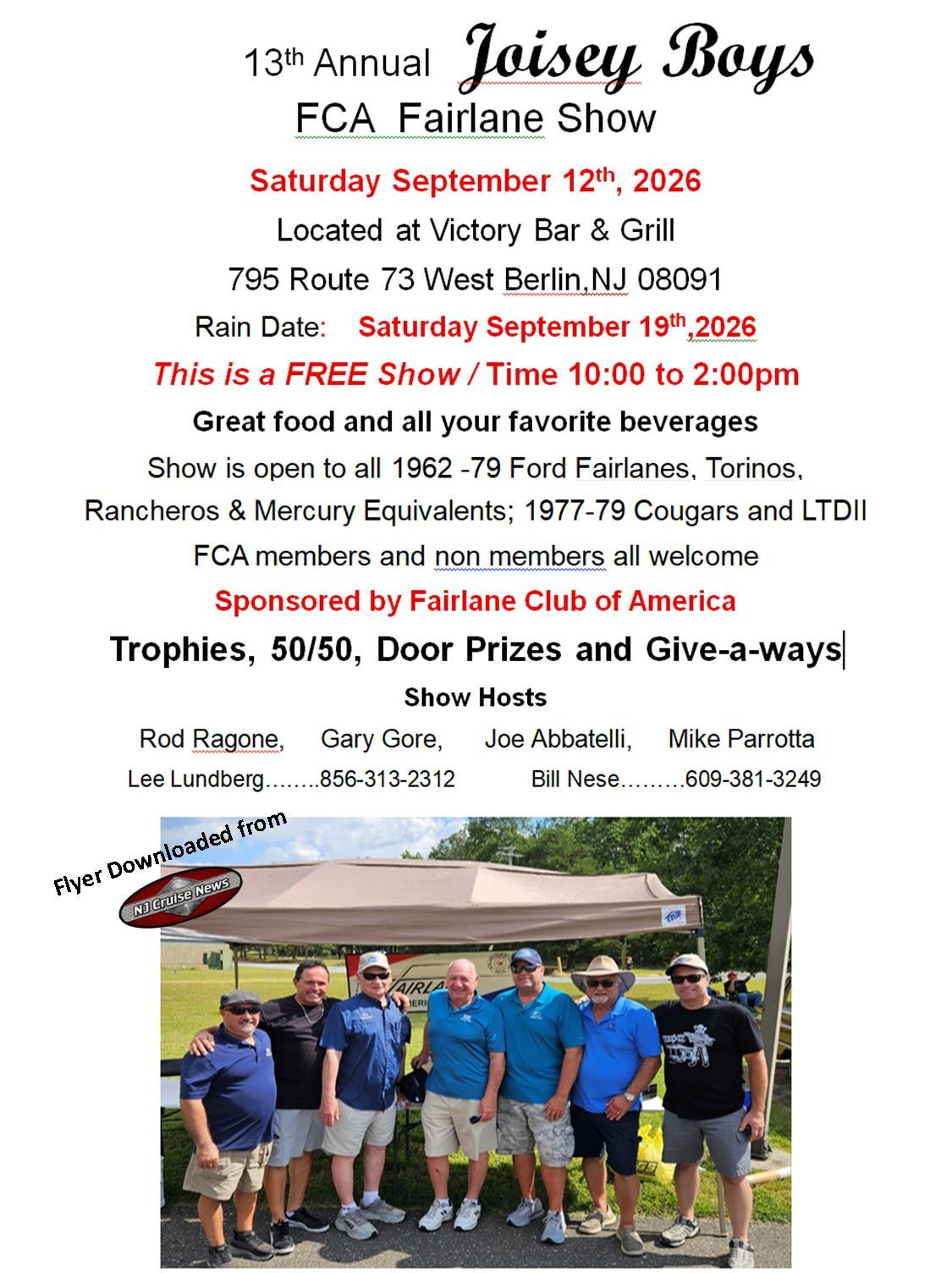 NJ Cruise News is not Responsible for any changes in Date, Time, or Change of location. Please contact your local Cruise.