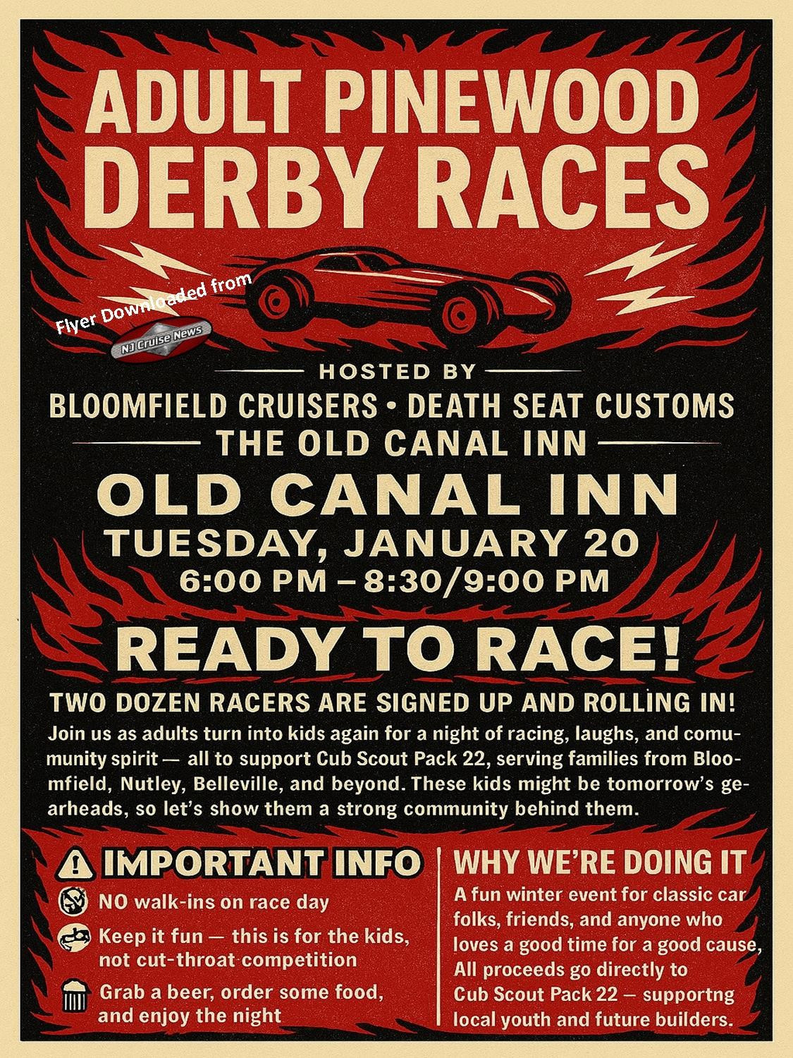 Proceeds go to support Cub Scout Pack 22. These kids might be tomorrow's gearheads, so let's show them a strong commmunity behind them.